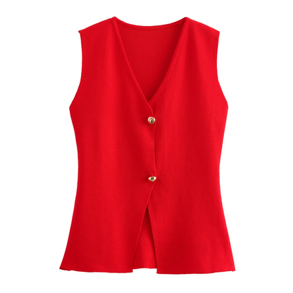 Stilvolles ärmelloses Oberteil mit V-Ausschnitt & Dekorativen Knöpfen als Weste
