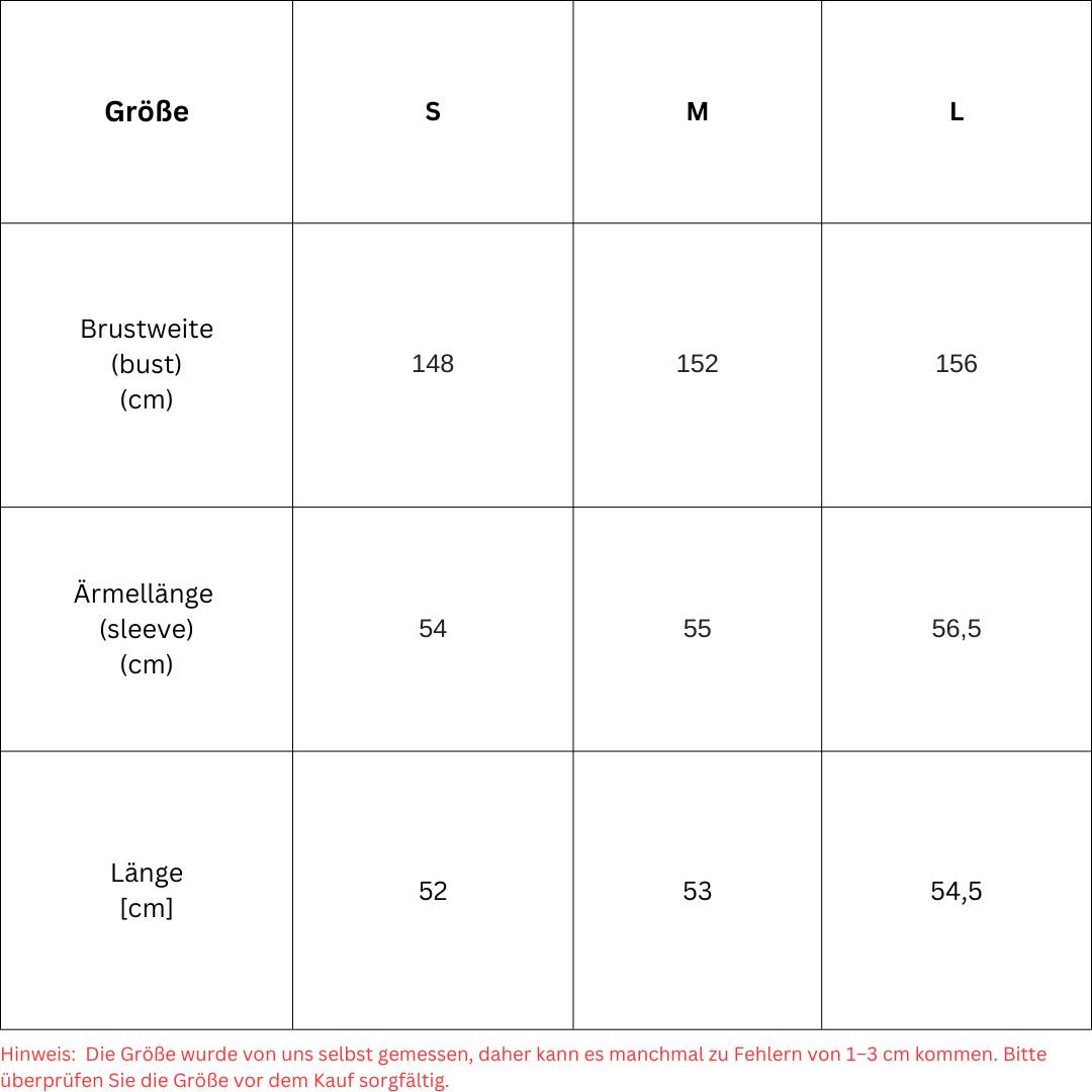 Pflegehinweis: Handwäsche oder Schonwaschgang bei 30°C, nicht bügeln, nicht bleichen.